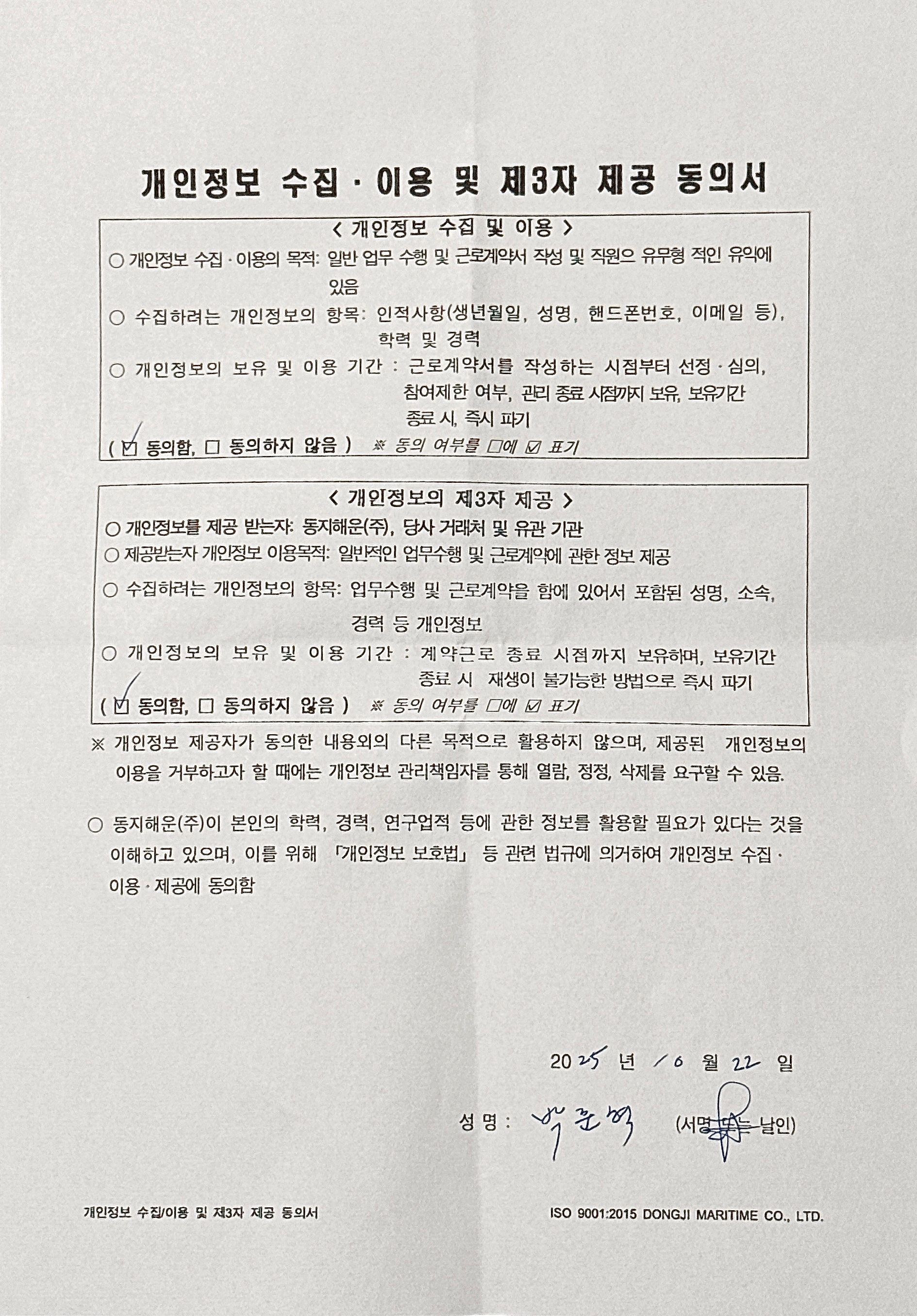 지원 직급 - 해상직원