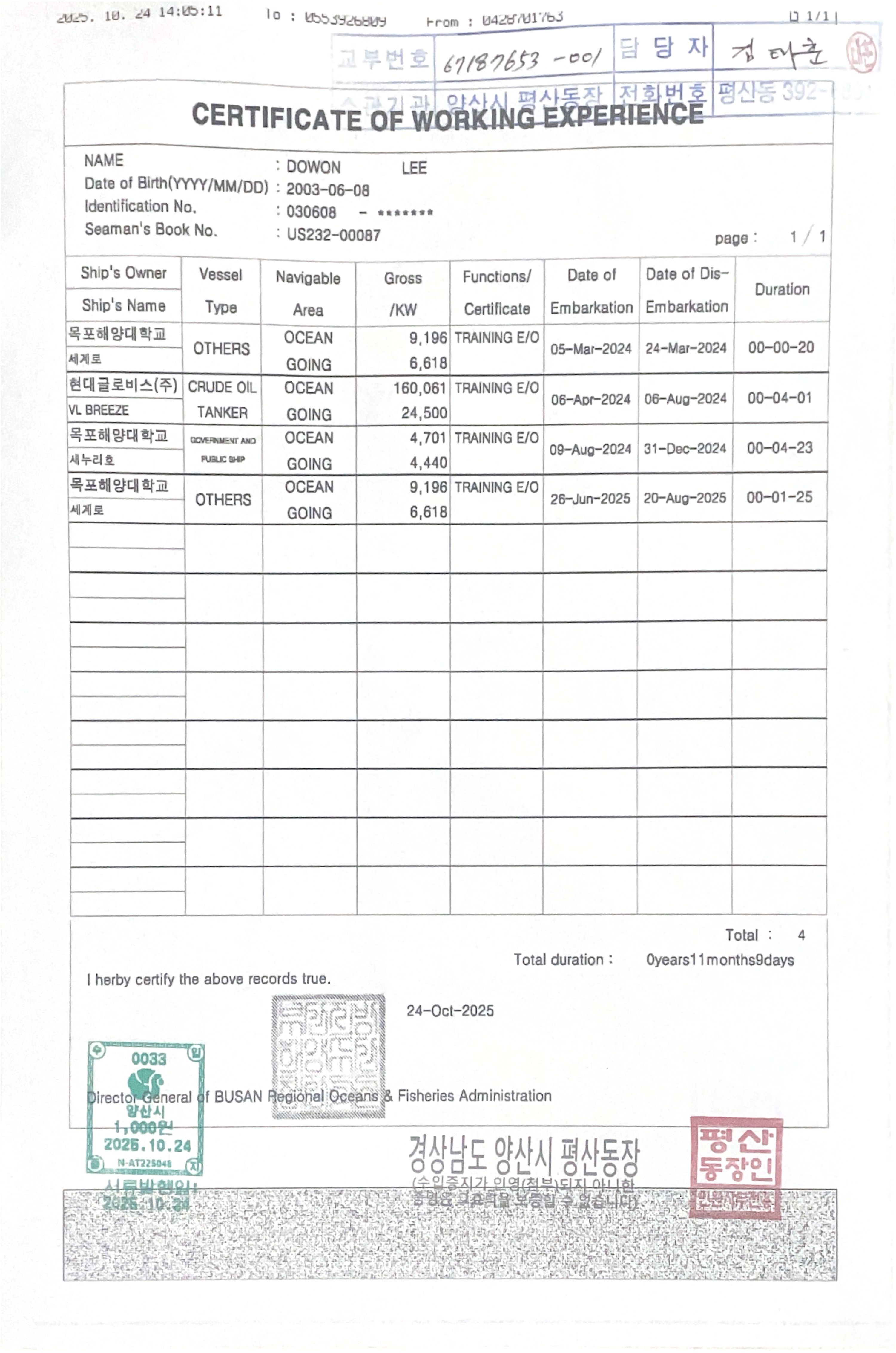 2025 목포해양대학교 취업박람회에서 동지해운 부스 도우미로 참여하며 현장에서 느낀 따뜻하고 매력적인 분위기에 이끌려 지원했습니다.